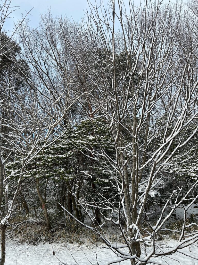 青空が見えているのに雪降りです。